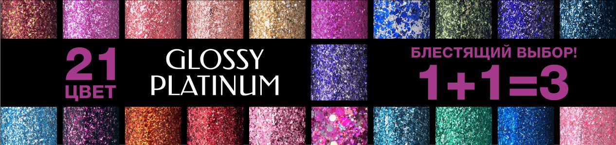 При покупке двух гель-лаков из коллекции Glossy Platinum, третий вы получаете в подарок. В акции участвует 21 цвет. Блестящий образ начинается с Glossy Platinum!